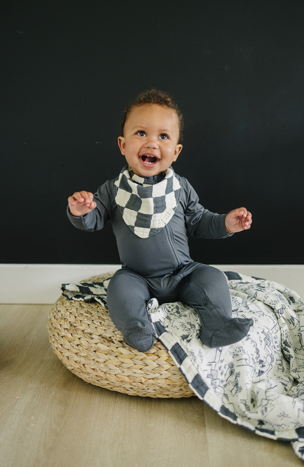 Shop clothes & accessories in the Mebie Baby charcoal and charcoal checkered...