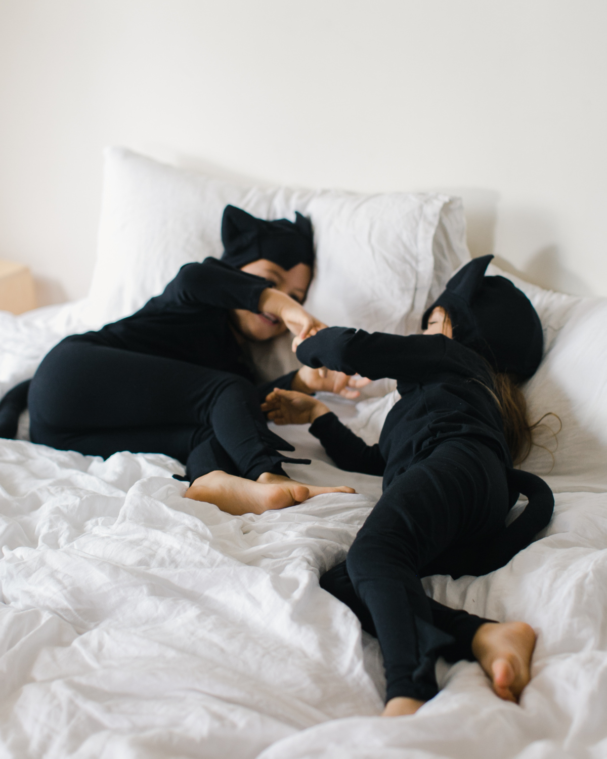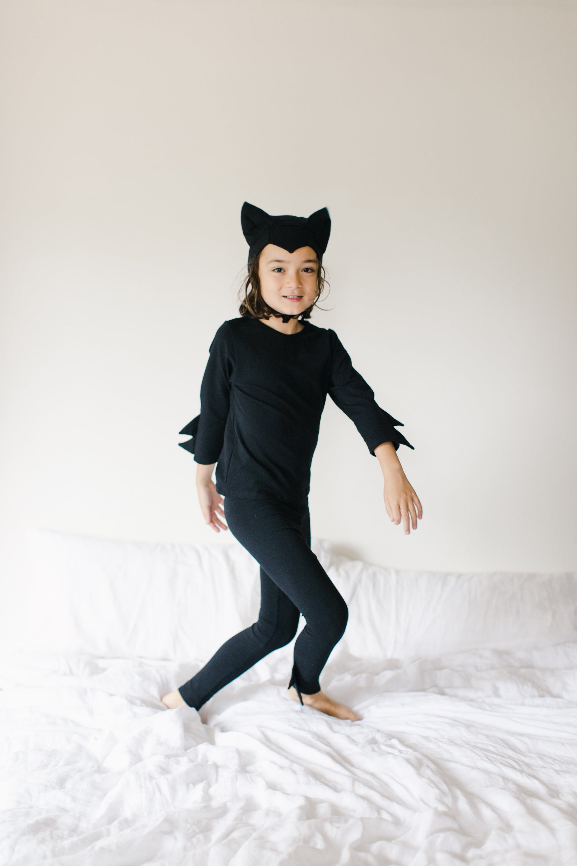 Who says black cats are bad luck? This cozy cotton hat makes the sweetest Halloween costume accessory. Designed with little hands in mind, featuring easy snap closures and stretchy fabrics. Have fun all day from playtime to dreamtime!