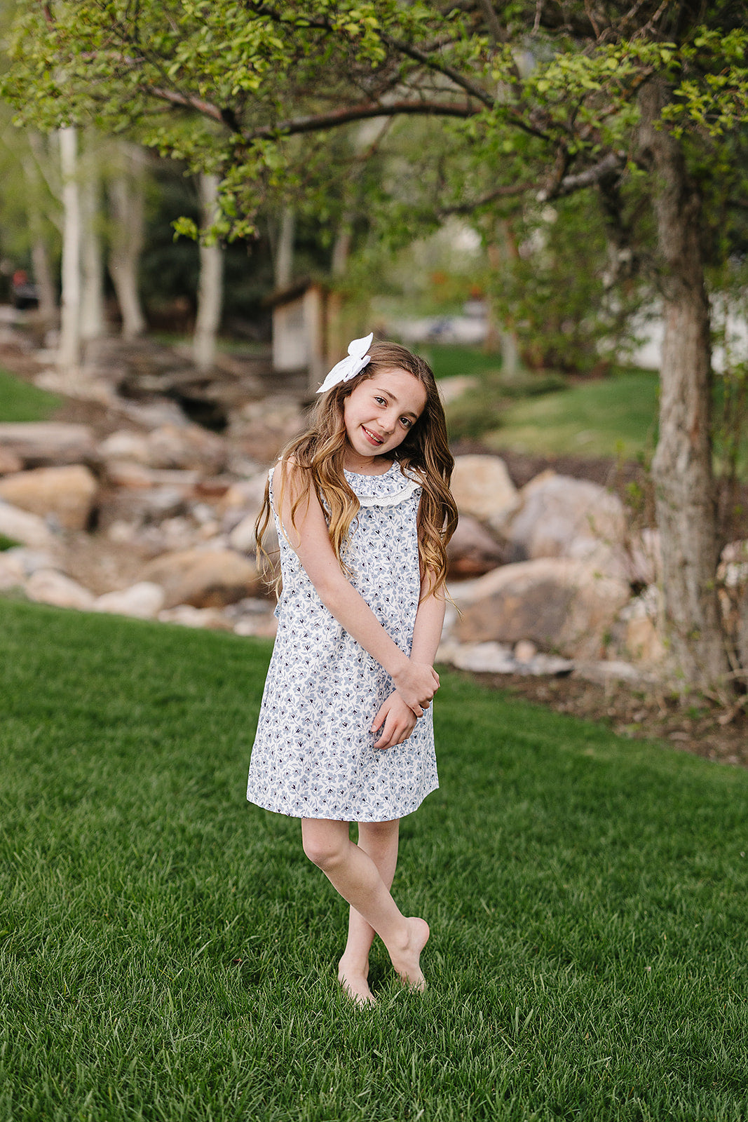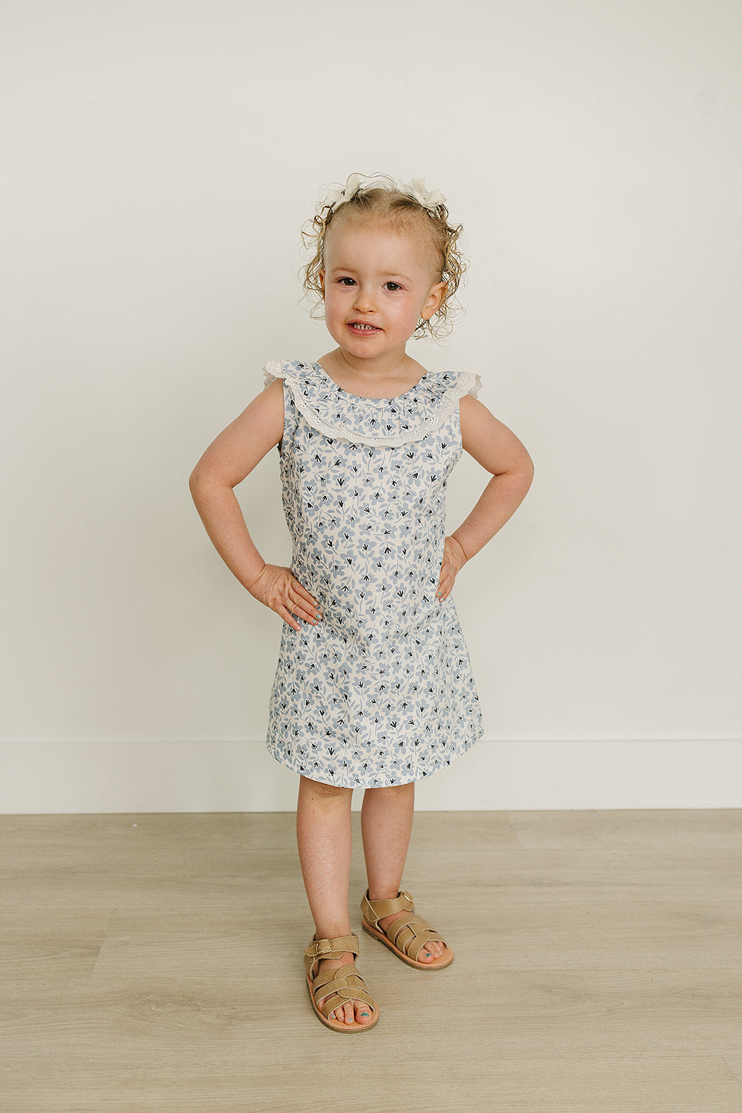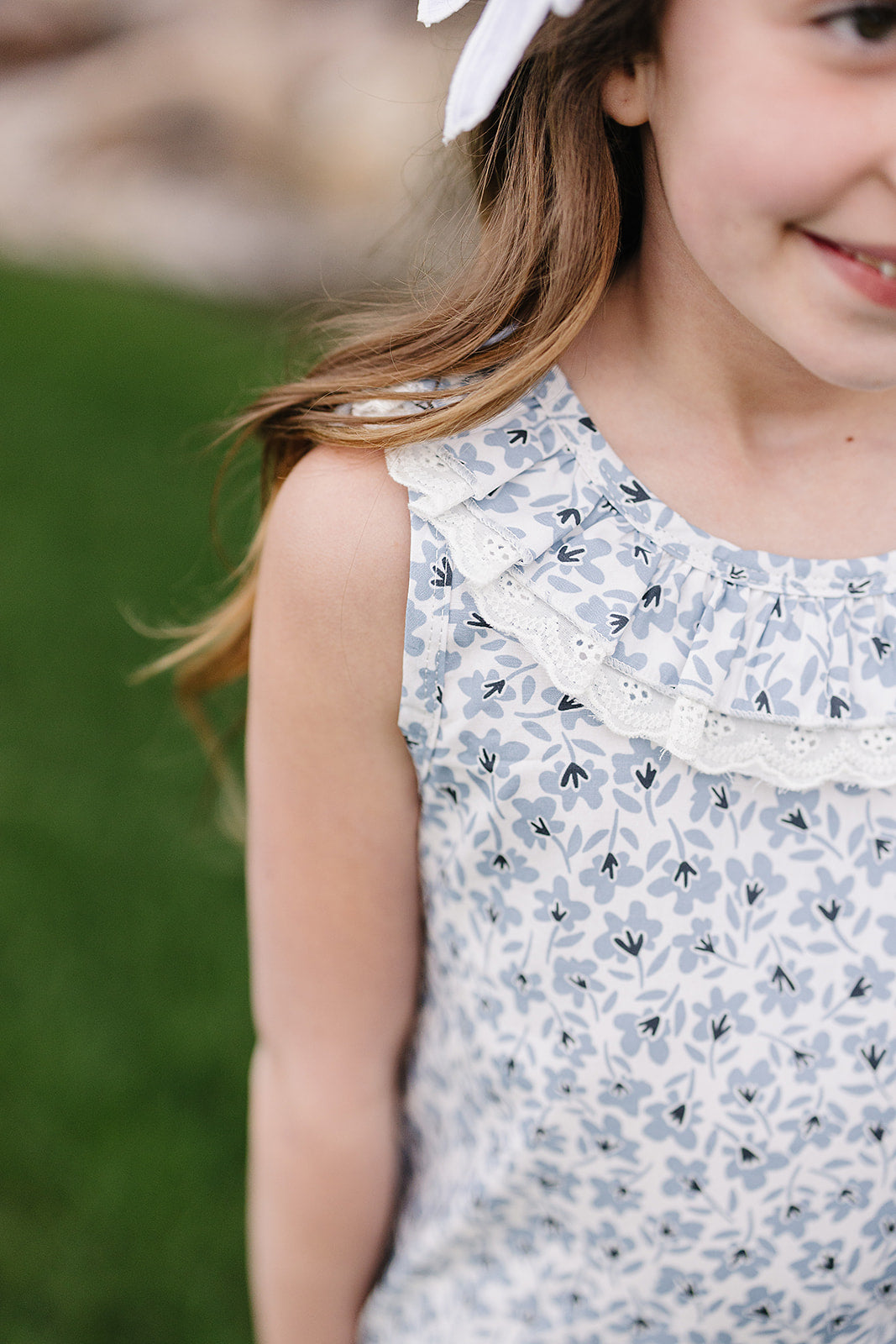 Classic charm meets modern comfort in our Blue Blossom Dress. Designed with a soft floral print and delicate eyelet lace trim accents, this dress is a picture-perfect piece for your little one’s growing wardrobe. A sweet V-back finished with a soft bow adds the perfect touch of elegance to this springtime favorite.