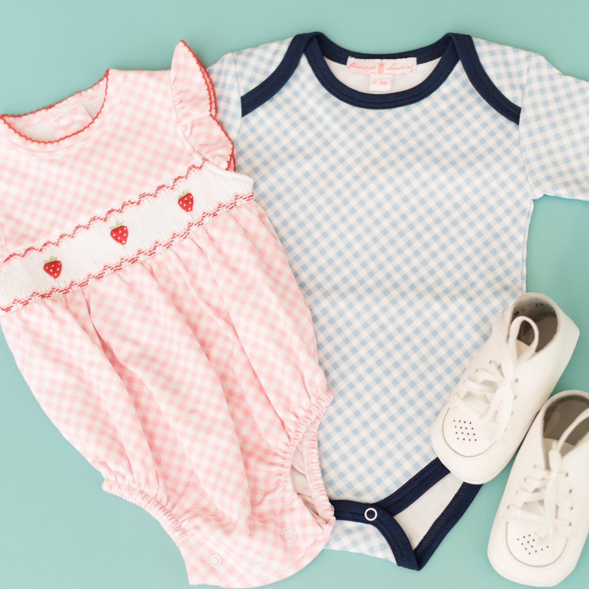 Blue Gingham Short Sleeve Onesie