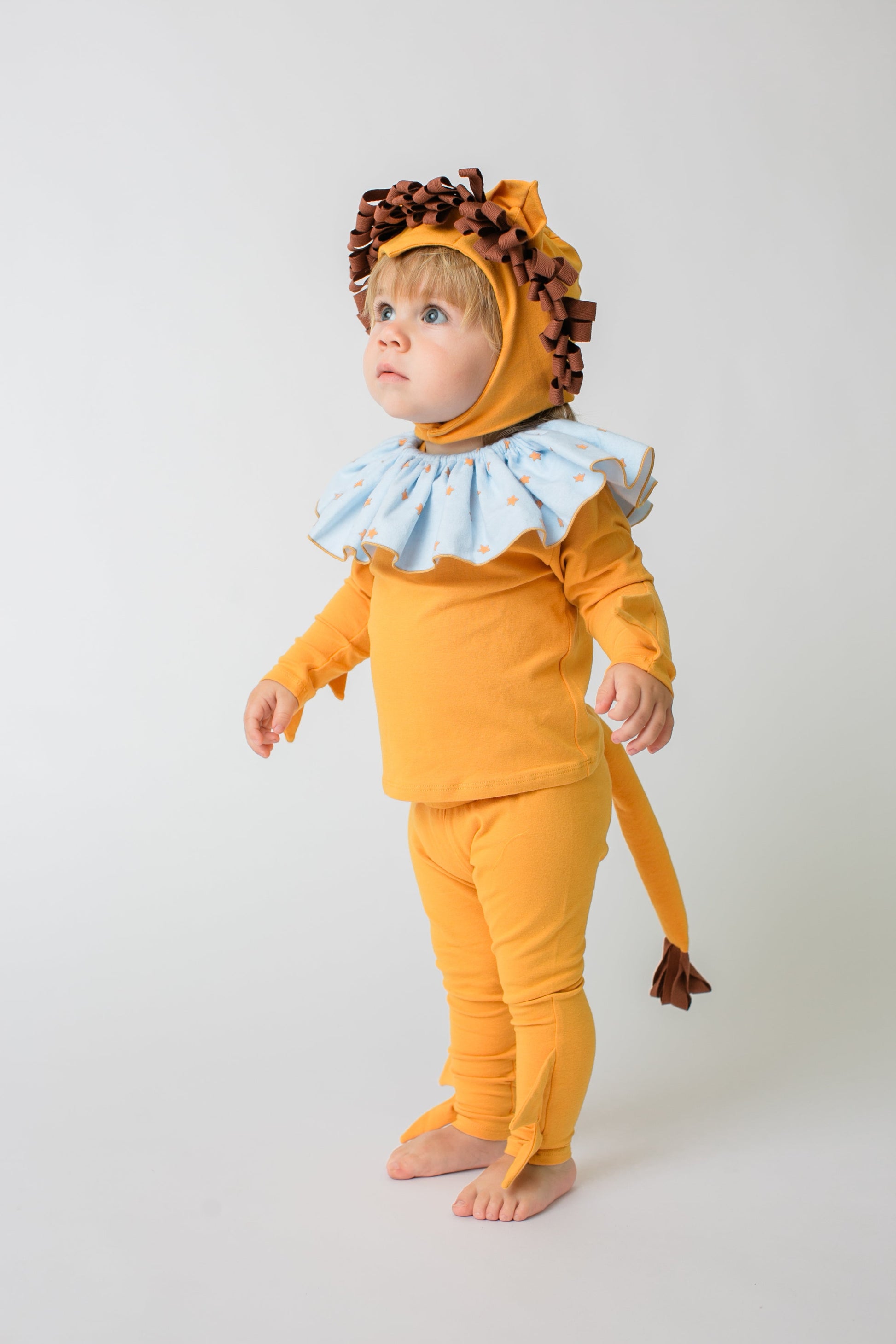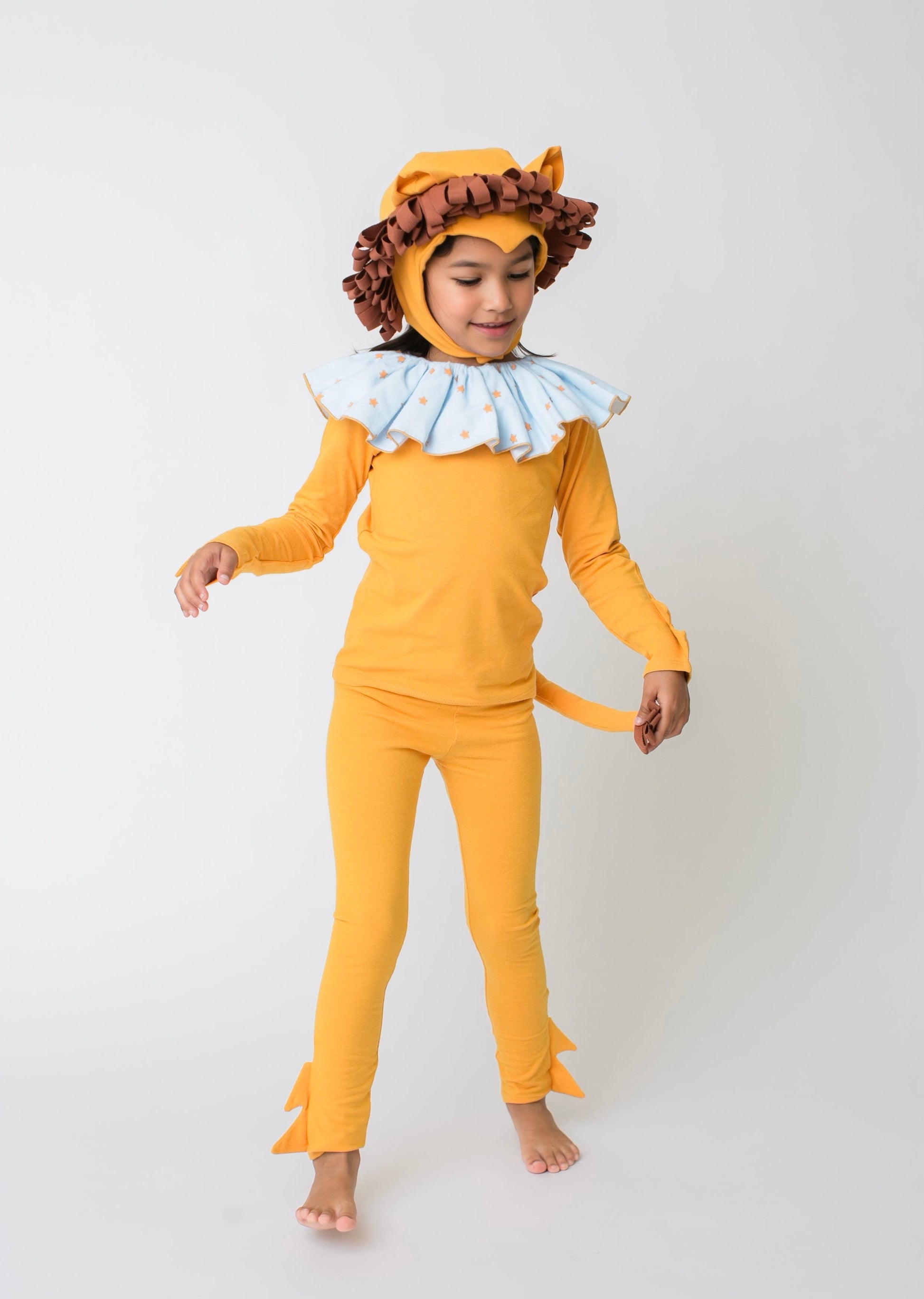 Made to transition from playtime to bedtime, this adorable circus lion costume is sewn from soft and breathable cotton and designed for little hands with stretchy elastics and magnetic snaps. Order the hat and tail on their own or the full pajama costume. Each piece is made with the highest quality eco friendly cotton. Have fun all day from playtime to dreamtime!