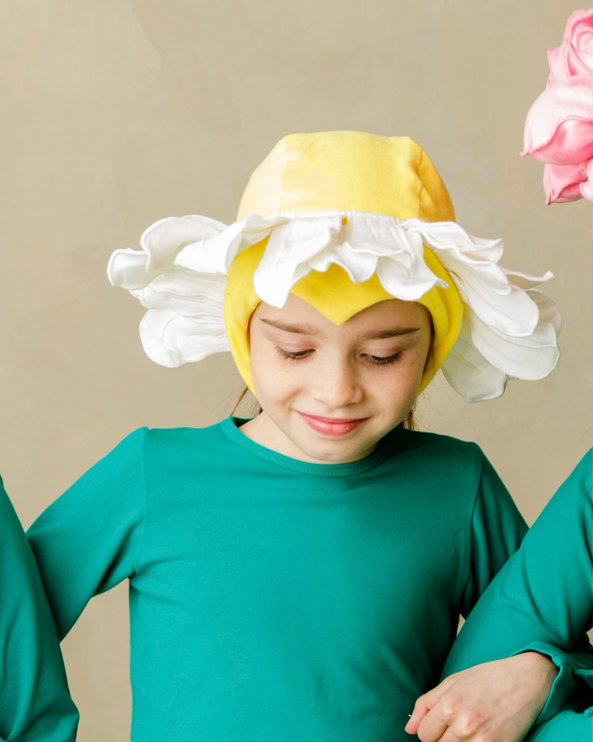 Let your child step into a magical garden with this enchanting Daisy Costume! This whimsical yellow daisy headdress is crowned by white, stand-up petals that frame the face like a blooming flower, perfectly paired with green stem pajamas with points resembling leaves. Straight out of a fairy tale, this costume evokes the magic of a hidden forest or a secret garden, where every child becomes a little flower sprite. Perfect for fairy adventures, outdoor play, or special celebrations, this costume invites your child to bloom in a world of wonder.