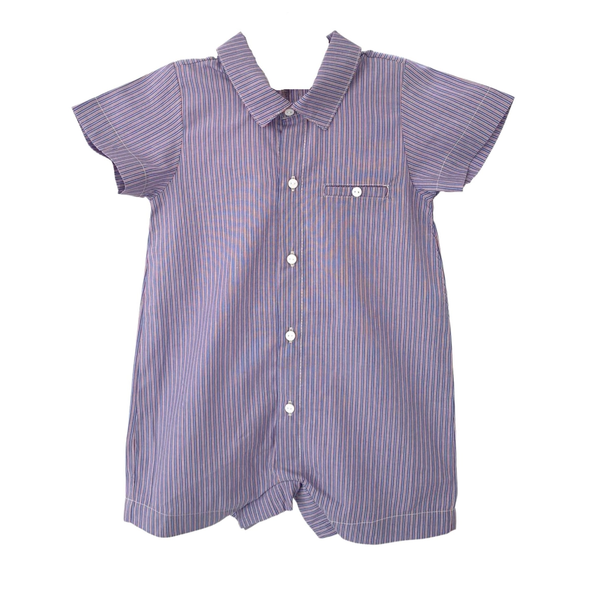 Pairs perfectly with the matching girl's dress in French Pinstripe for the cutest sibling sets. This is a classic collared romper that is great for play and dress up.