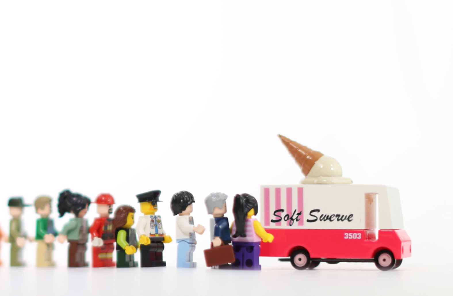Soft-serving up good looks. As far as a symbol of simpler times and a carefree way to stuff sugar and calories in your childhood, you can’t beat the ice cream truck. We popped a melty top, added a bright pink base, sprinkled a pun, and voila! Iconic toy made. No ice cream truck jingle – you’re welcome.