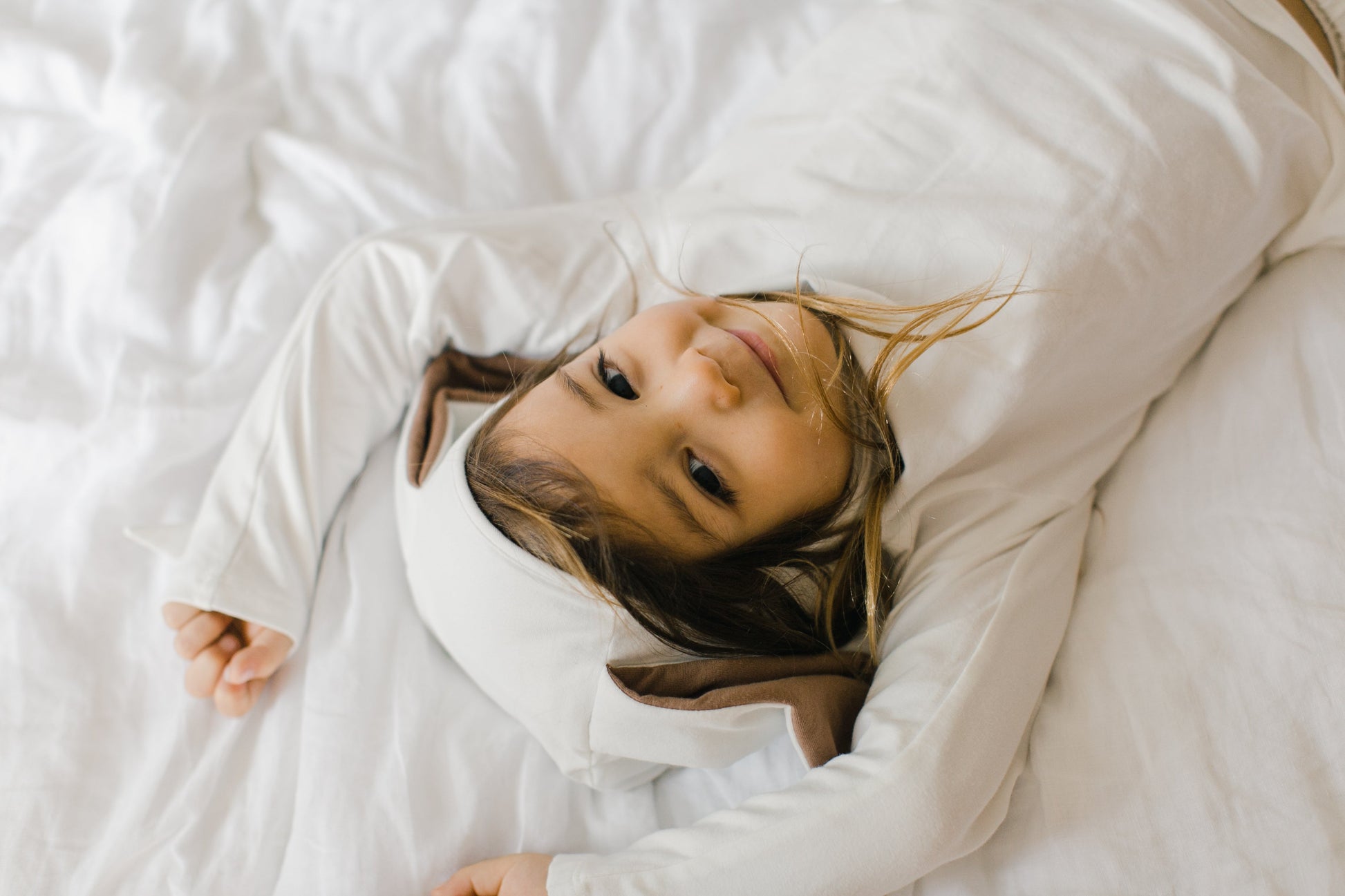 Looking for a white rabbit to complete your family Alice in Wonderland costume? Look no further! This adorable set comes with a cozy, organic cotton pajama top and bottom, a lined lop-eared bunny bonnet with easy snap closure under the chin, and a fluffy faux fur tail attached to a covered elastic belt. The hat and tail can be slipped off at bedtime for ultimate functionality.