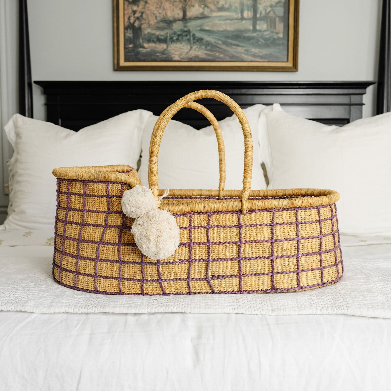 Lavender Grid African Moses Basket, Vegan Handle