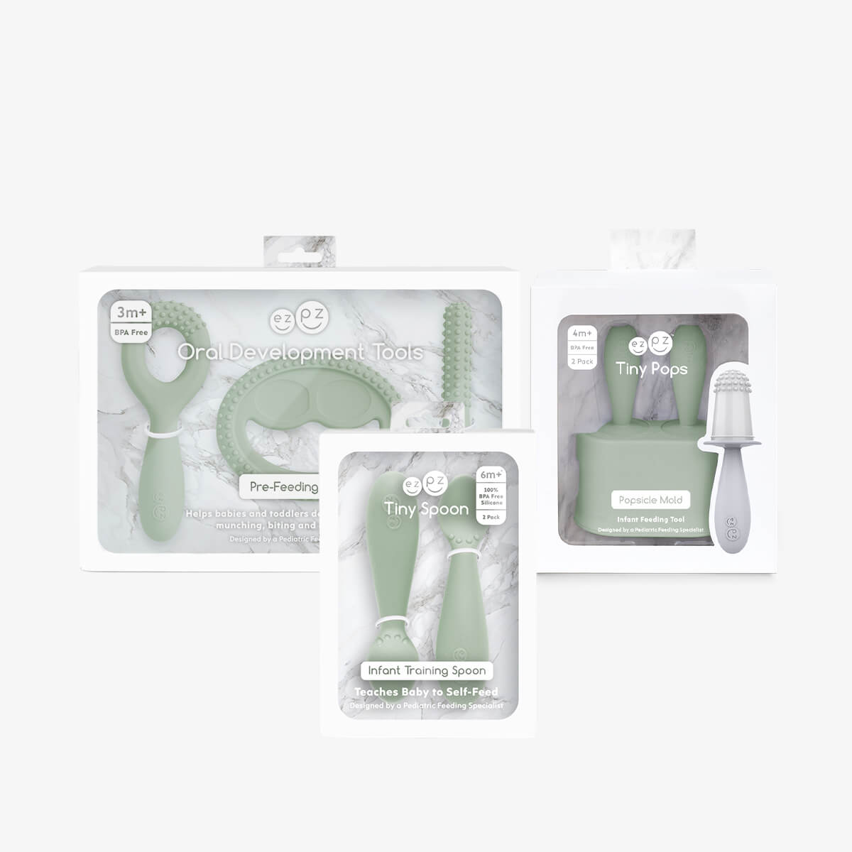 Motor planning is a skill that helps children remember the steps to perform an action. Our easy-to-hold handle provides babies + toddlers the motor planning needed for successful and consistent movements to the mouth. The Motor Planning System includes the Oral Development Tools, Tiny Pops and Tiny Spoons.