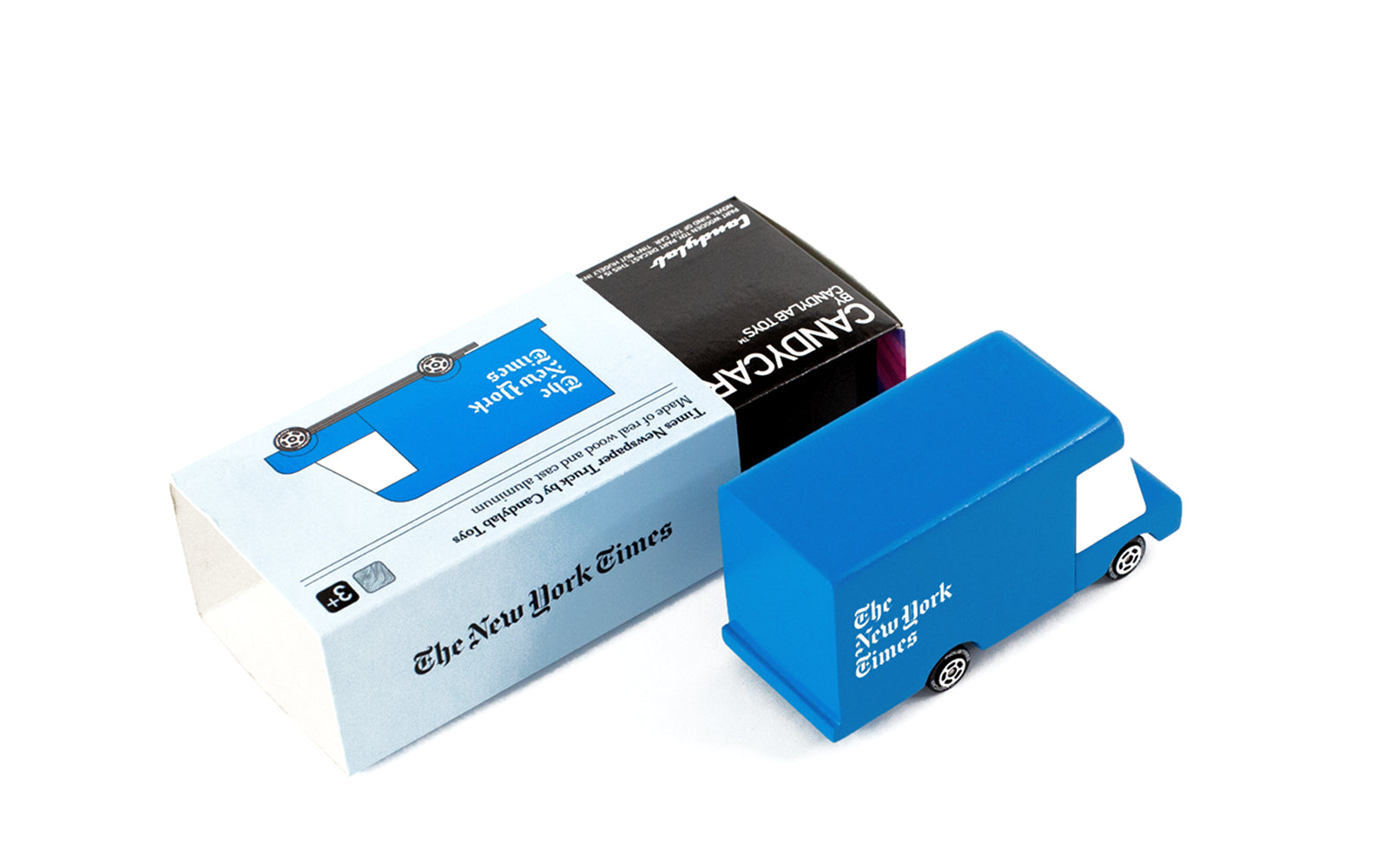 Breaking news: A new Times truck is rumbling into Toy Town. Just the right size for young readers and grown-up collectors, the cute 3.5” van was inspired by The New York Times blue-and-white delivery vehicles that plied the tri-state roads more than 35 years ago. Made of solid wood, and limited quantities available.