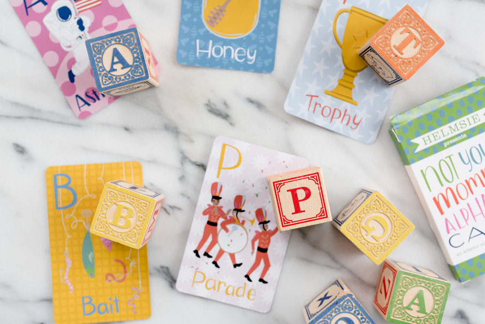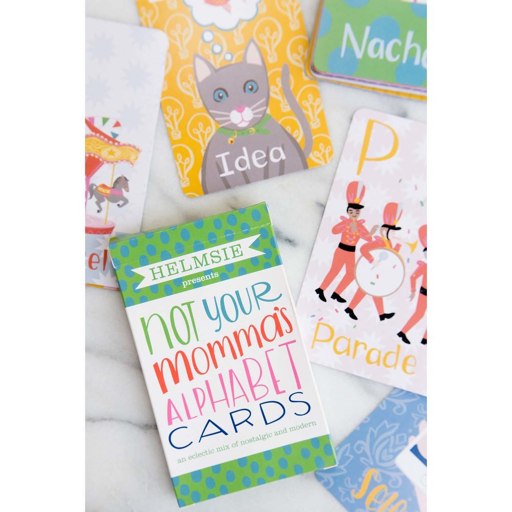 These are truly Not Your Momma’s Alphabet Cards. Though the look and size are reminiscent of the vintage ABC cards that we all remember, these flash cards reflect modern day additions, such as L is for Latte and S is for Selfie.