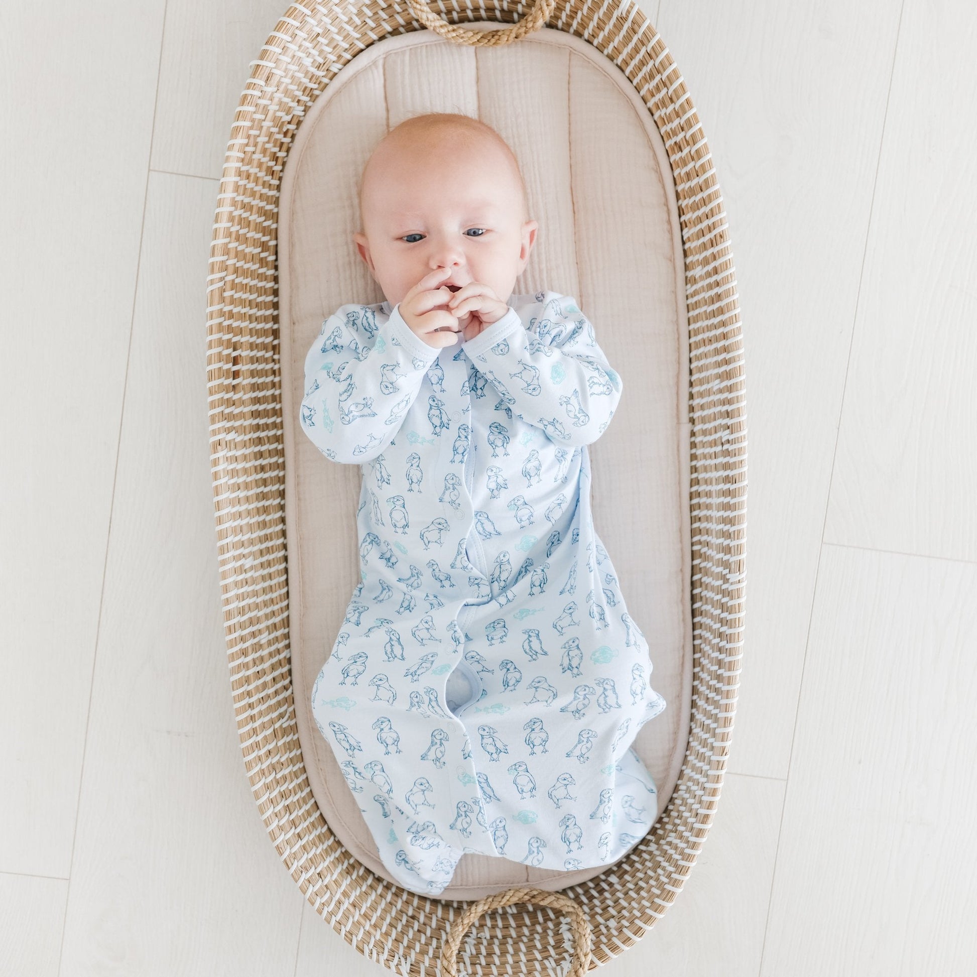 Matching hat, blanket, converter, big brother 2 piece PJ and hooded rompers are also available in our Puffin Print!