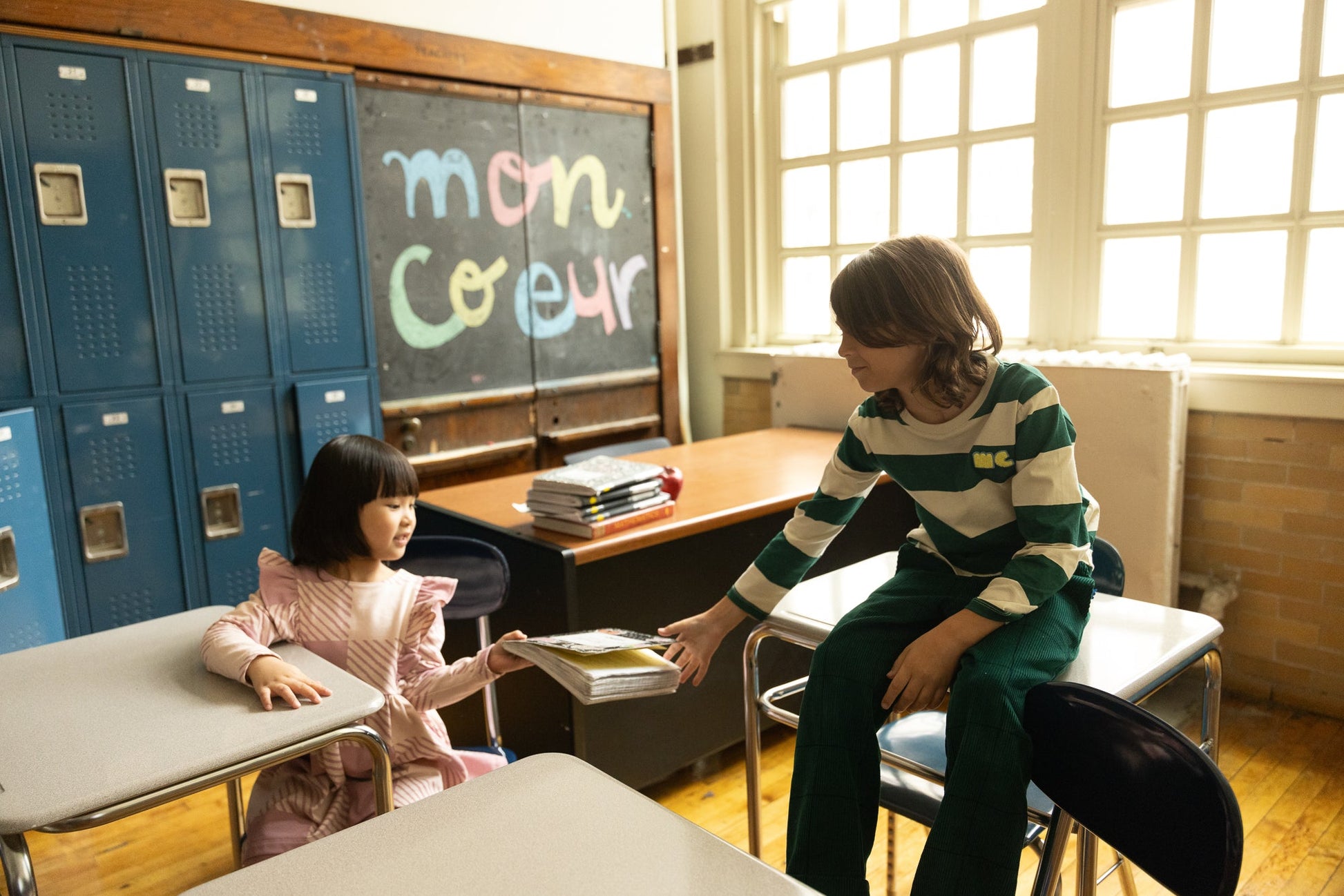 This classic rugby tee gets a modern update — made for every kid and every adventure. With bold green-and-white stripes and an embroidered “MC” monogram, it’s a nod to vintage style with a unisex fit that’s made for play. Crafted from cozy recycled and organic cotton, it's a wardrobe staple you’ll reach for again and again.