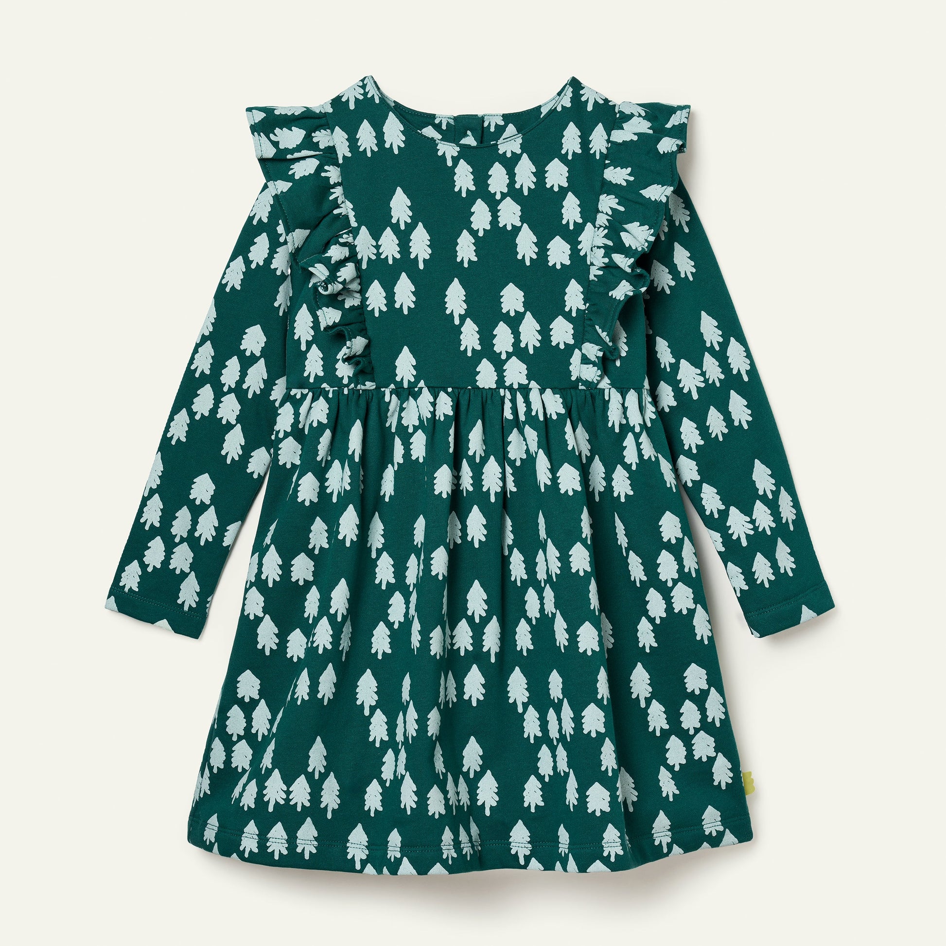 Recycled Cotton Snowy Pine Ruffle Dress