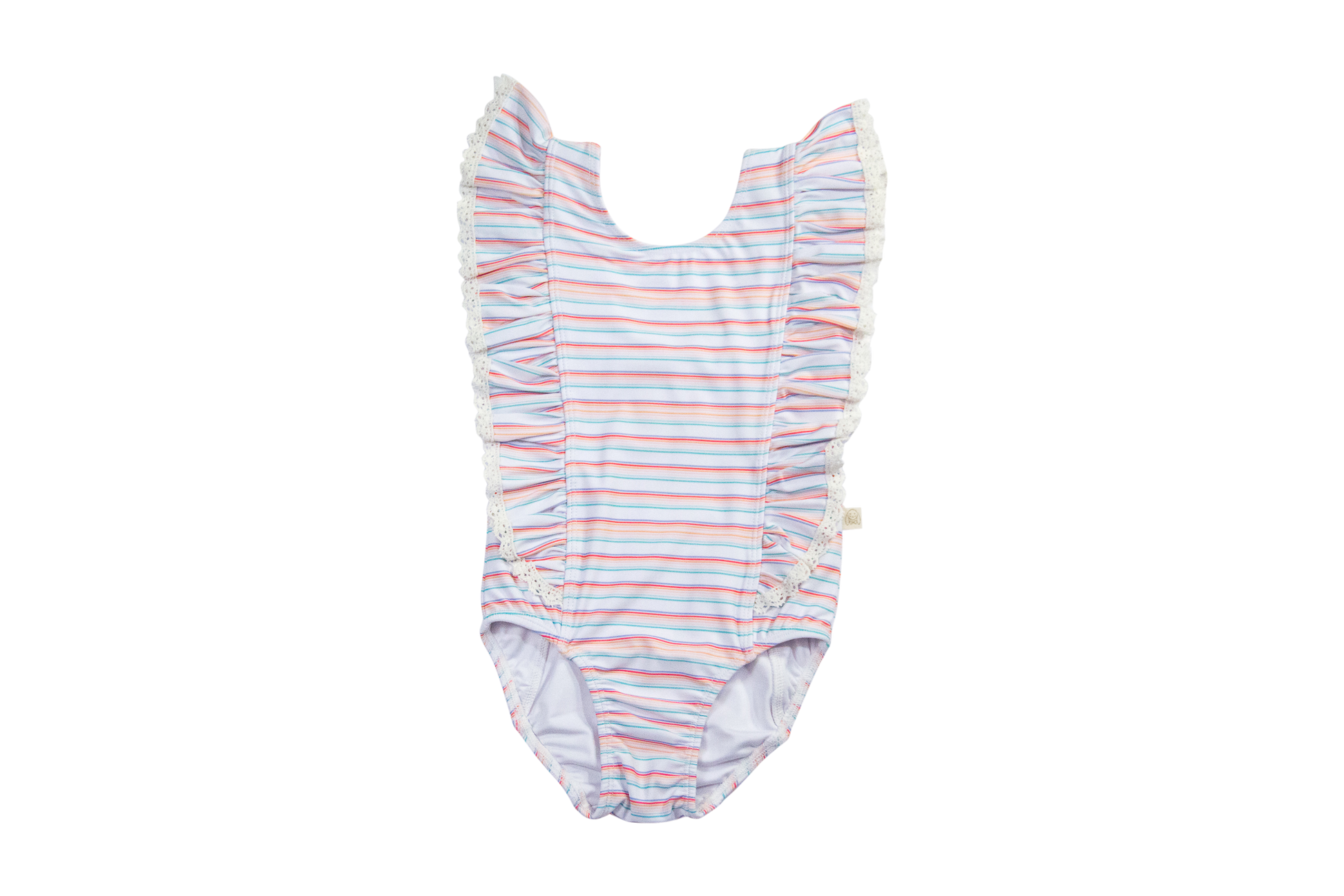 Rosie Ruffle Swimsuit- Retro Rainbow Stripe