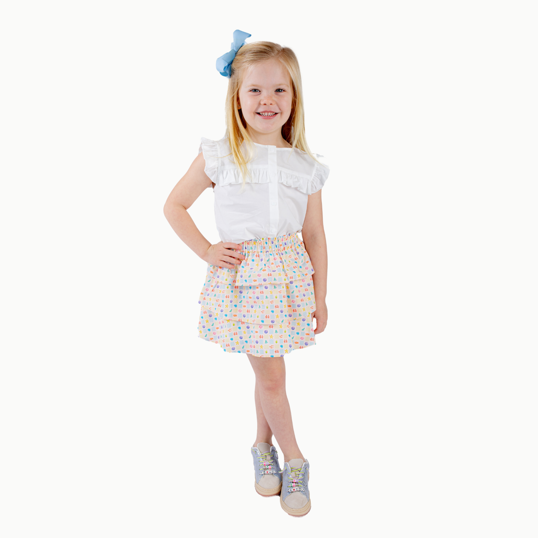Looking "nice" is easy when clothes are cute and fun! This tank comes in white for mixing and matching, or you can brighten things up with our Sea Life print. Snaps down the front means getting ready for a day of summer adventuring is quick and easy!
