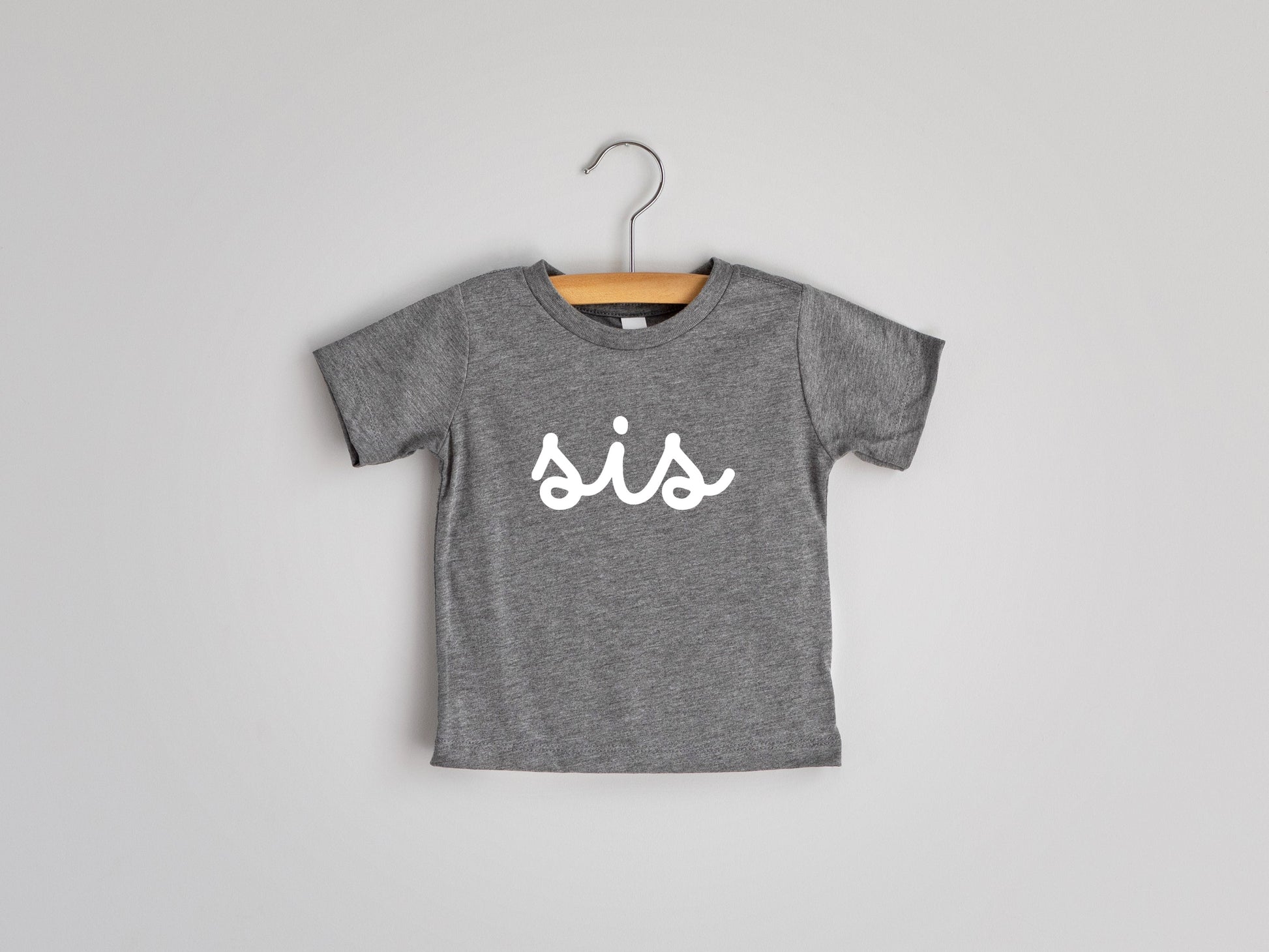 A fresh, modern design for the sisters! This fun kids shirt features script typography in crisp white ink on a super soft tri-blend fabric in your choice of mauve pink or heather grey. Designed with love and printed by hand in our Ohio workshop. Designed to match with our "bro" and "sis" script designs in all baby, toddler, and youth sizes.