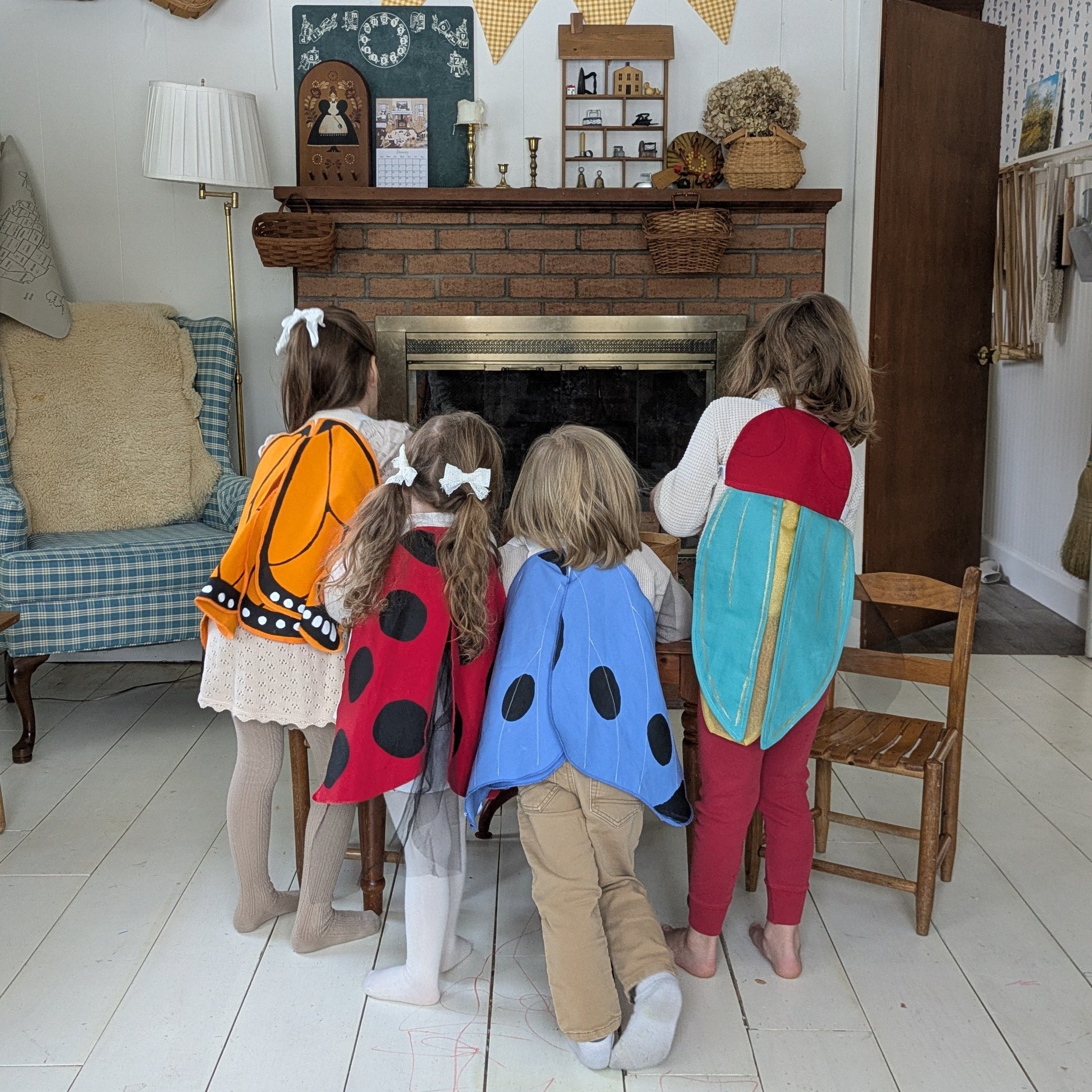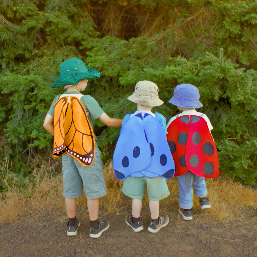 The wings are attached with elastic armbands that are wide and comfortable for little shoulders. Pairs beautifully with our Antennae Hat to add some nature whimsy to your everyday play.