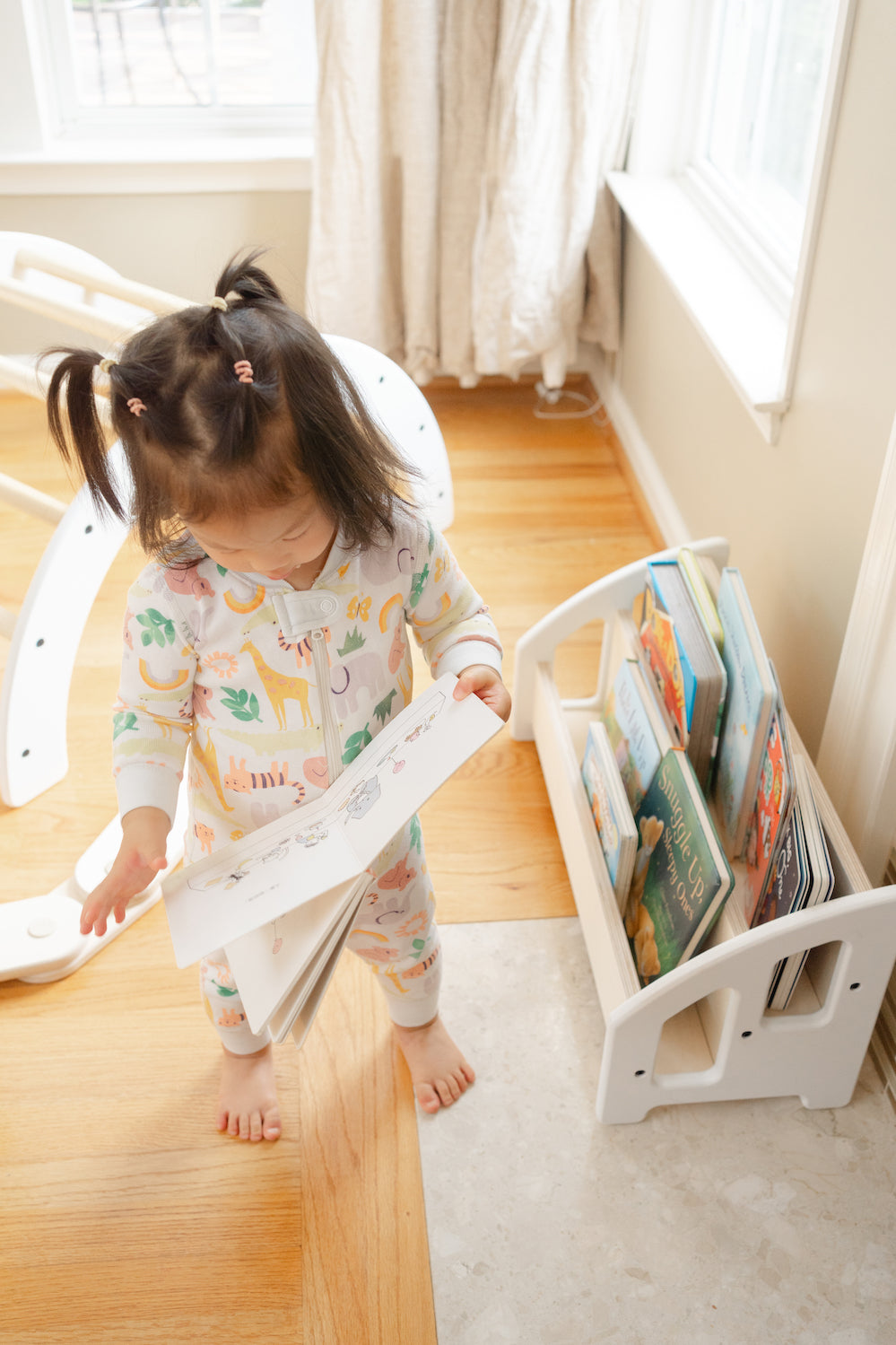 Open Shelves - Forward facing book covers makes it easy for children to see and select their desired reading materials