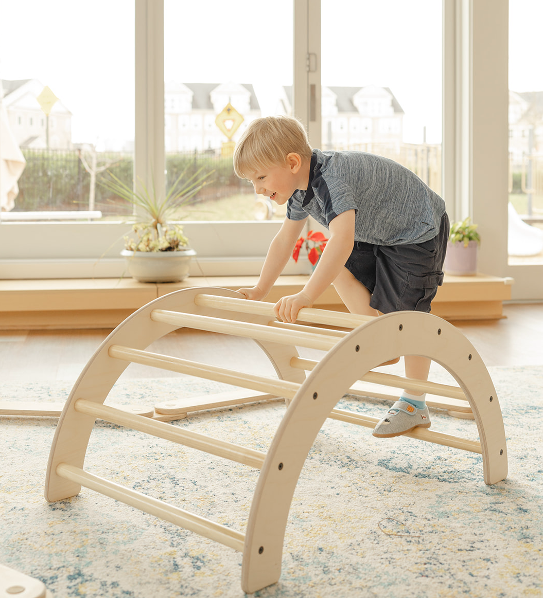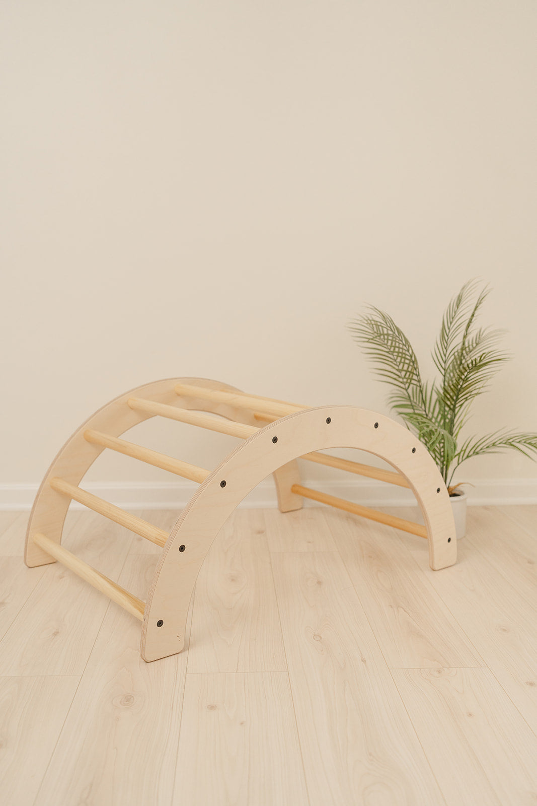 Crafted from high-quality birch plywood and poplar hardwood, the Climbing Arch features a simple and elegant design. The edges are rounded over and sanded smooth to ensure no sharp edges get in the way of your little’s next climbing session. The arch's height and width are designed to accommodate toddlers and young children, making it accessible and suitable for various age groups.