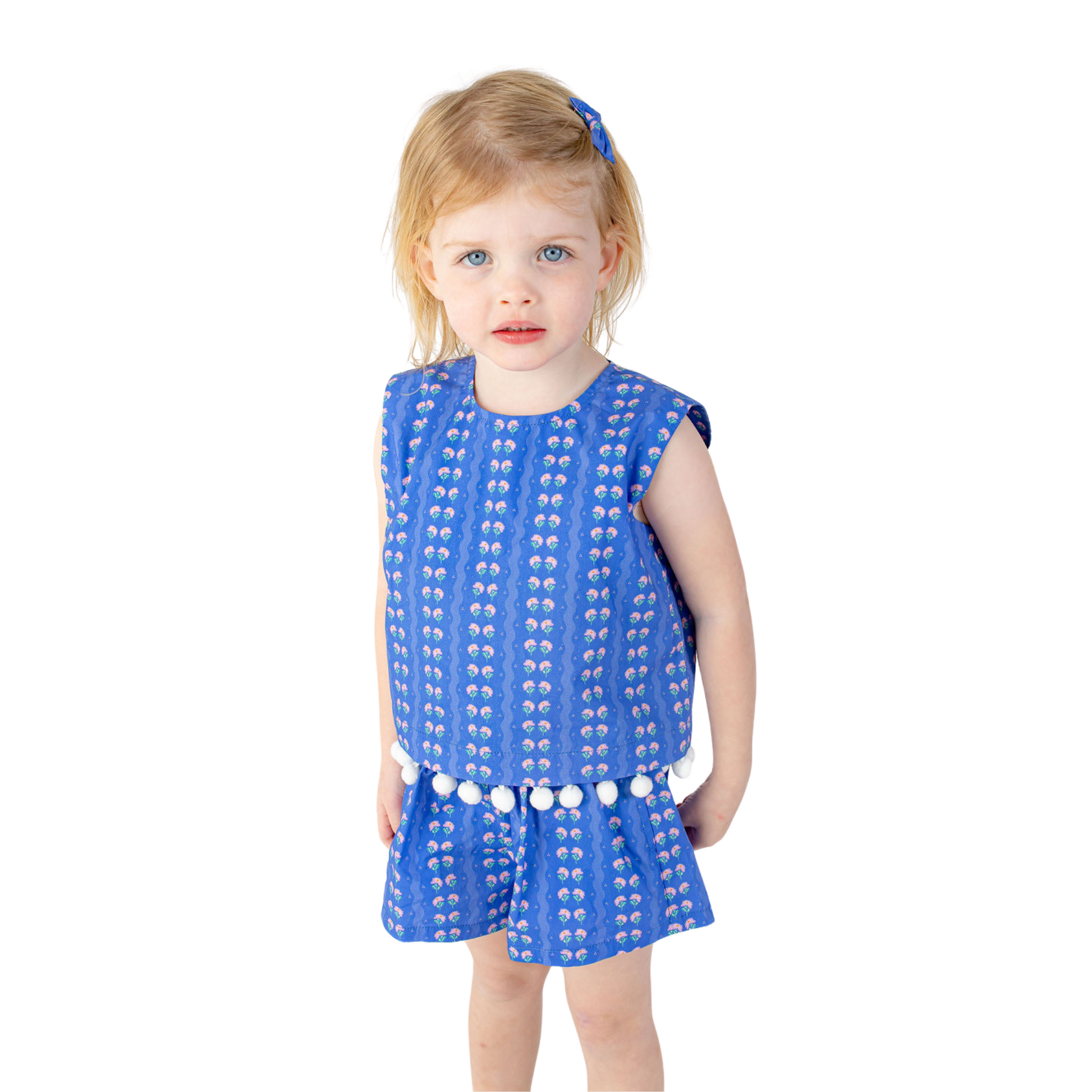 With an interchangeable bottom trim, your little can choose from ruffles, pom poms, or tulle to customize this top to fit the mood of the day.