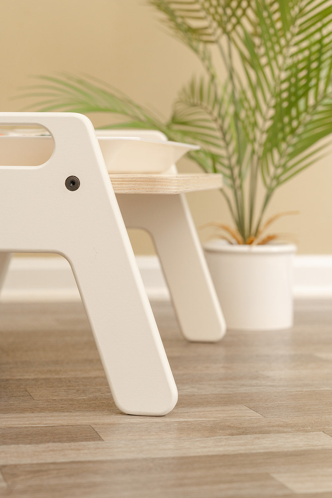 The Activity Tray features a sturdy and child-friendly design, built from high-quality, sustainably sourced materials. Its compact size allows for easy placement in playrooms, bedrooms, or preschool classrooms, creating a designated space for children to engage in self-directed play. The tray comes with two pencil rests for any loose items that may roll off (hello-crayons and beads!)