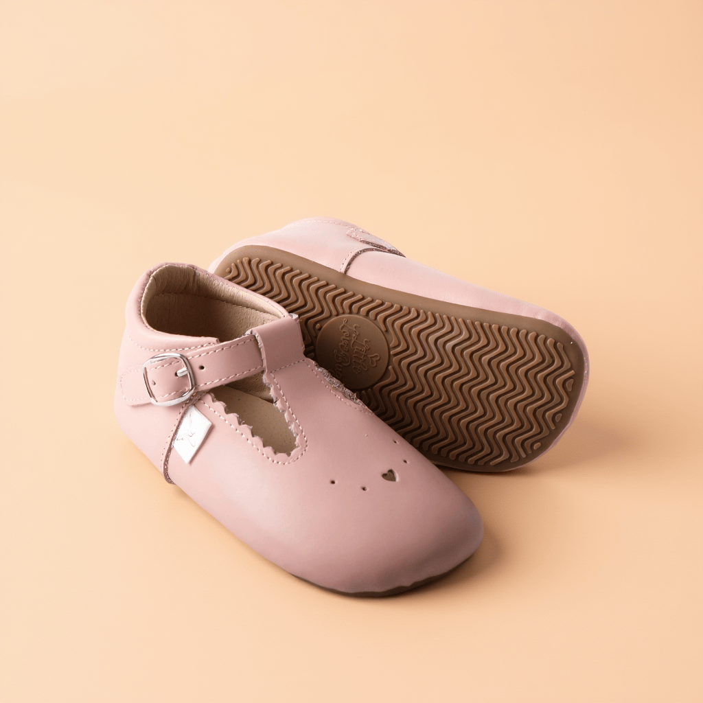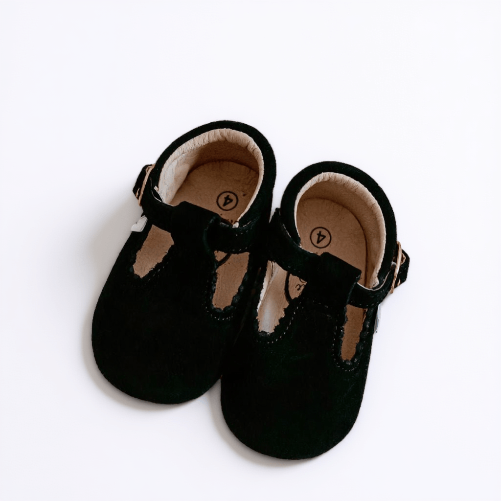 The T Bar is a timeless dress shoe designed with little feet in mind. Featuring a wide toe-box and flexible barefoot sole, it supports natural movement while keeping your child comfortable all day. The classic buckle closure and wide opening make it easy to put on, with the scalloped detailing adds the perfect touch of charm. Versatile enough for everyday wear yet polished enough for special occasions, The T Bar is a beautiful blend of style, comfort, and practicality.