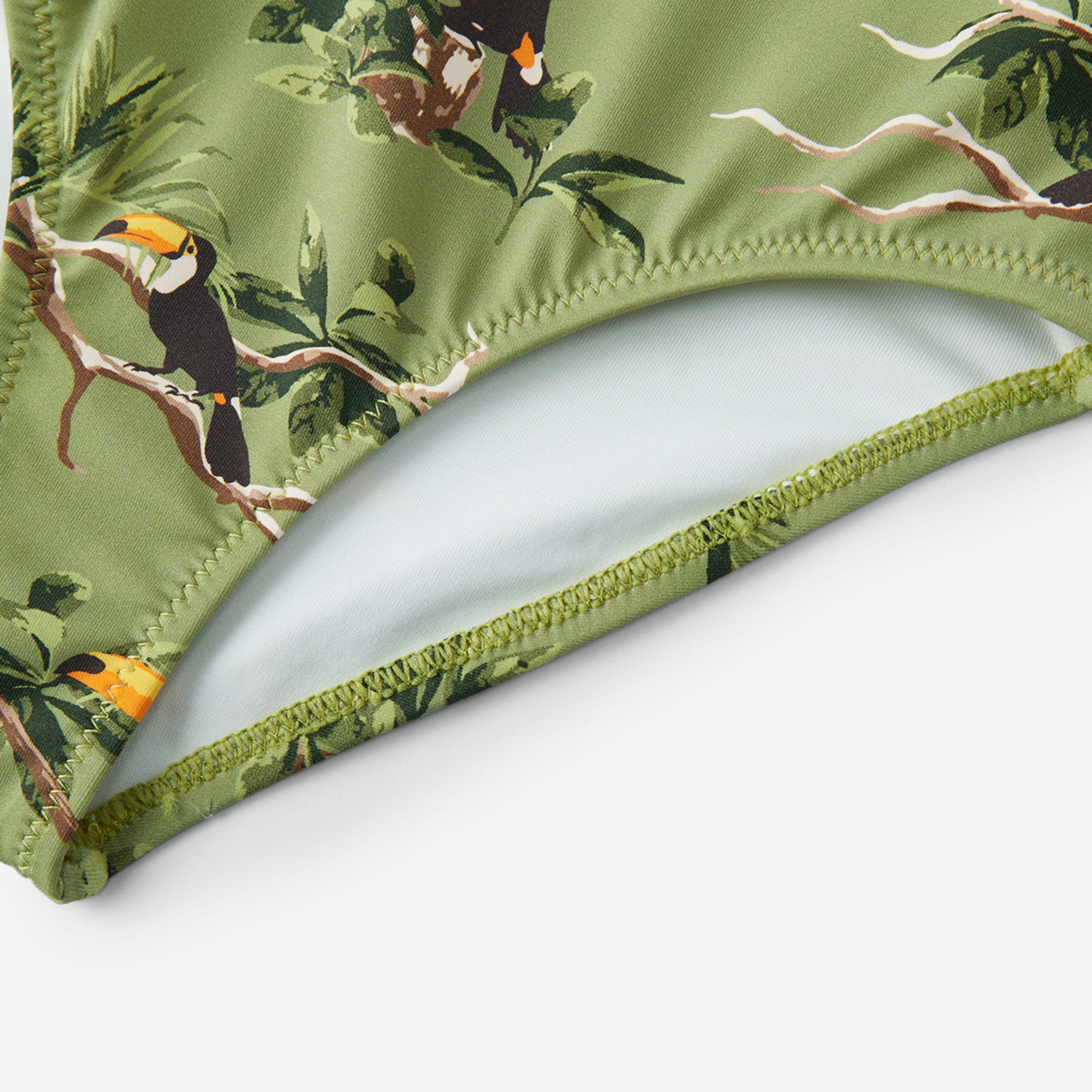 Your little one will make a splash in style with our Ruffle Square Neck Swimsuit in the Toucan print. This swimsuit is made from a fade-resistant blend of 87% nylon, 13% spandex, and sun protection of UPF 50+, it’s perfect for fun-filled days at the pool or beach.
