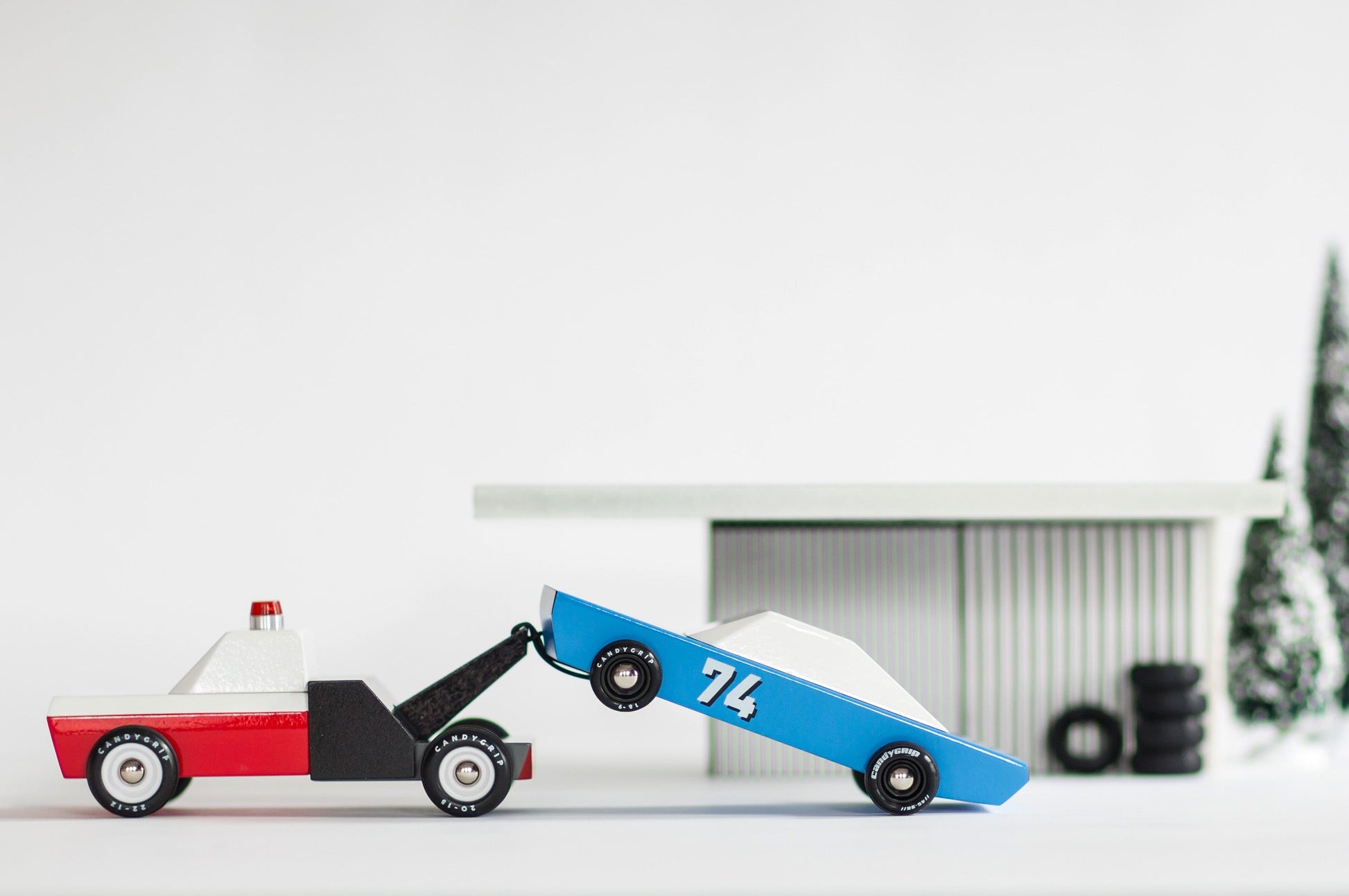 A staple of every garage, Towie is glad to jump to any car's rescue. Sturdy, and ready to use its rubber band to help a car in need. Not for children under 3 years of age. Check out all the Americana™ Cars that pair with Towie here.