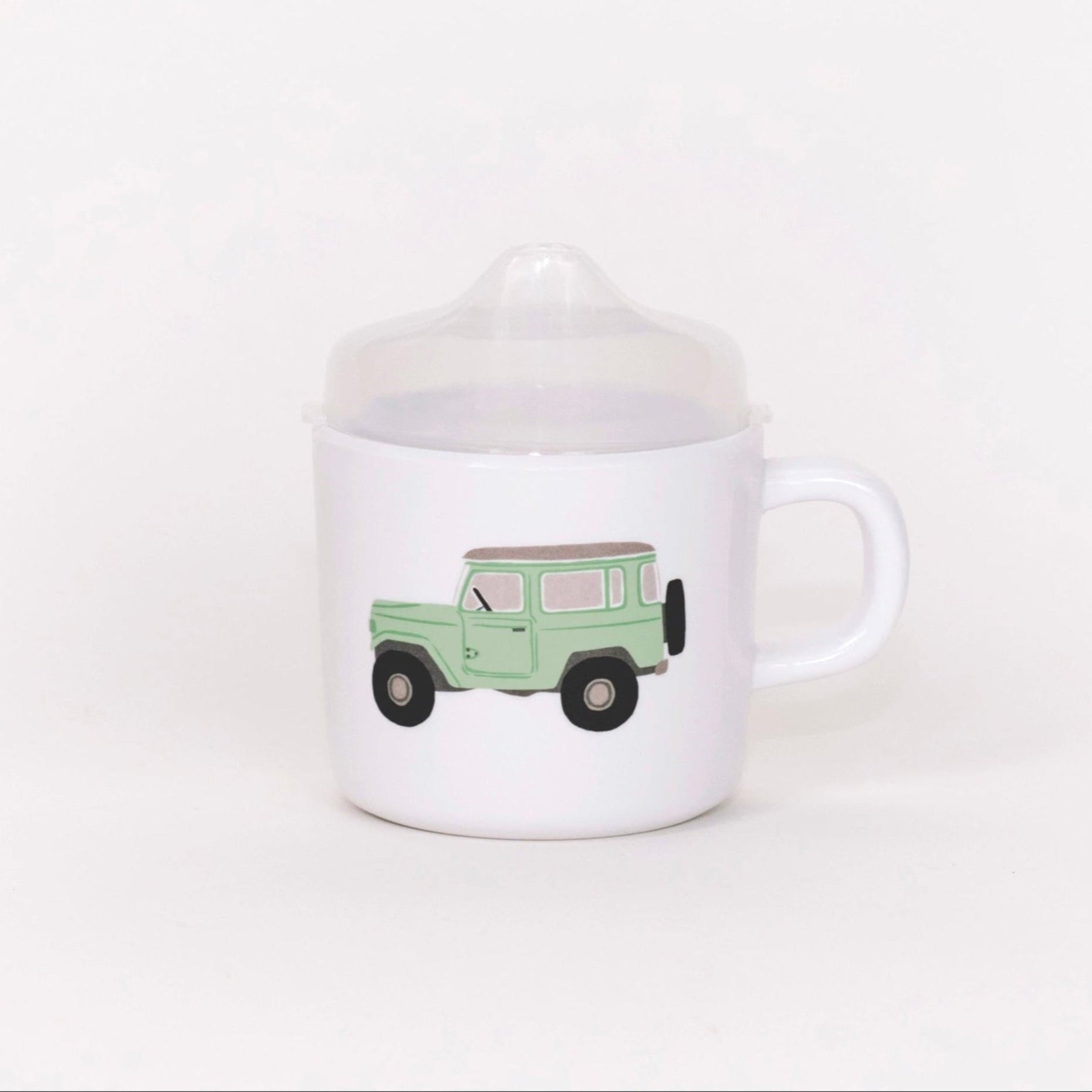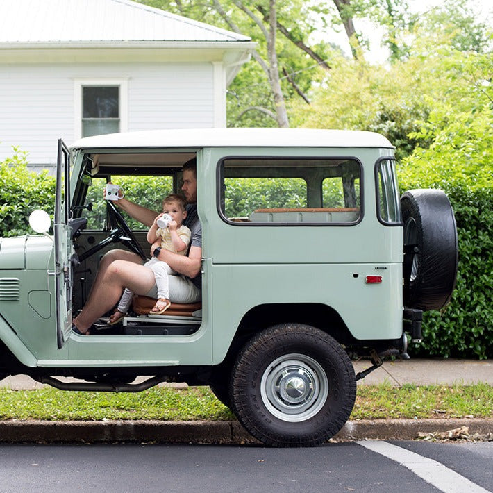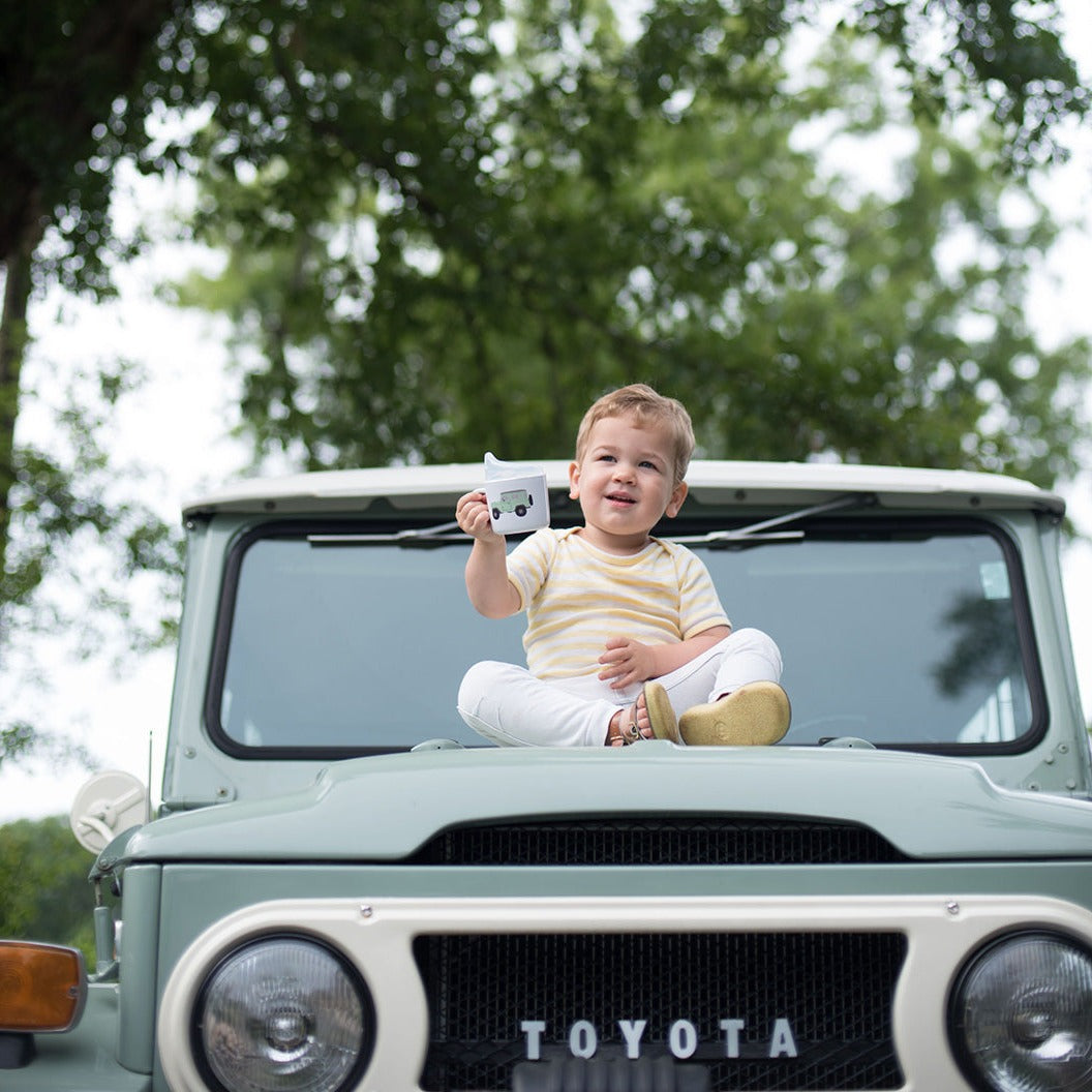 Little ones and grown-ups love this sippy cup for babe featuring a classic Landcruiser FJ40 in mint green. Helmsie's Creative Director, Karla, illustrated this truck inspired by her husband's dream car that now sits in their driveway. Every child, and most Dad friends, want to take it for a spin when they visit. Mamas and Dadas alike will appreciate this cup's sweet color and classic Americana appeal. A coordinating adult mug is also available or you can buy them together in our Two of Kind set.