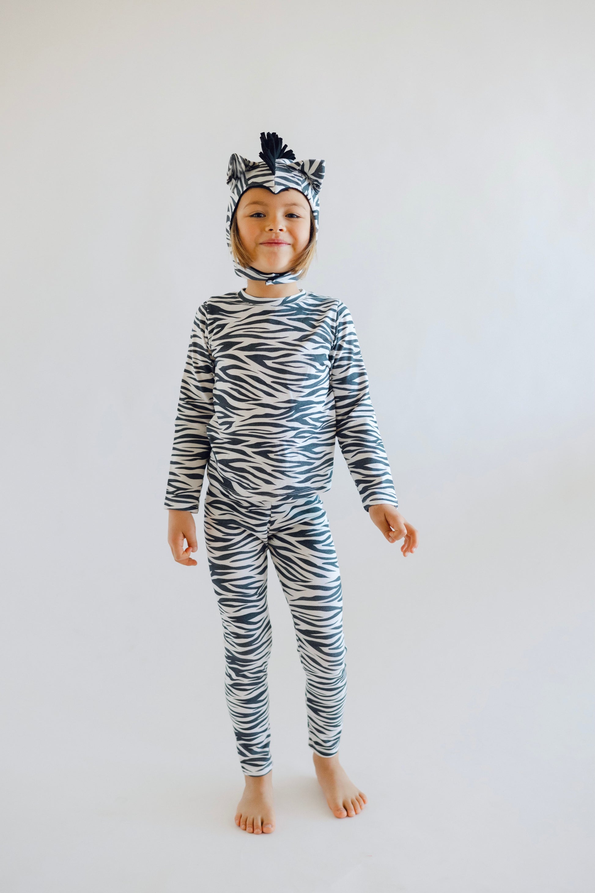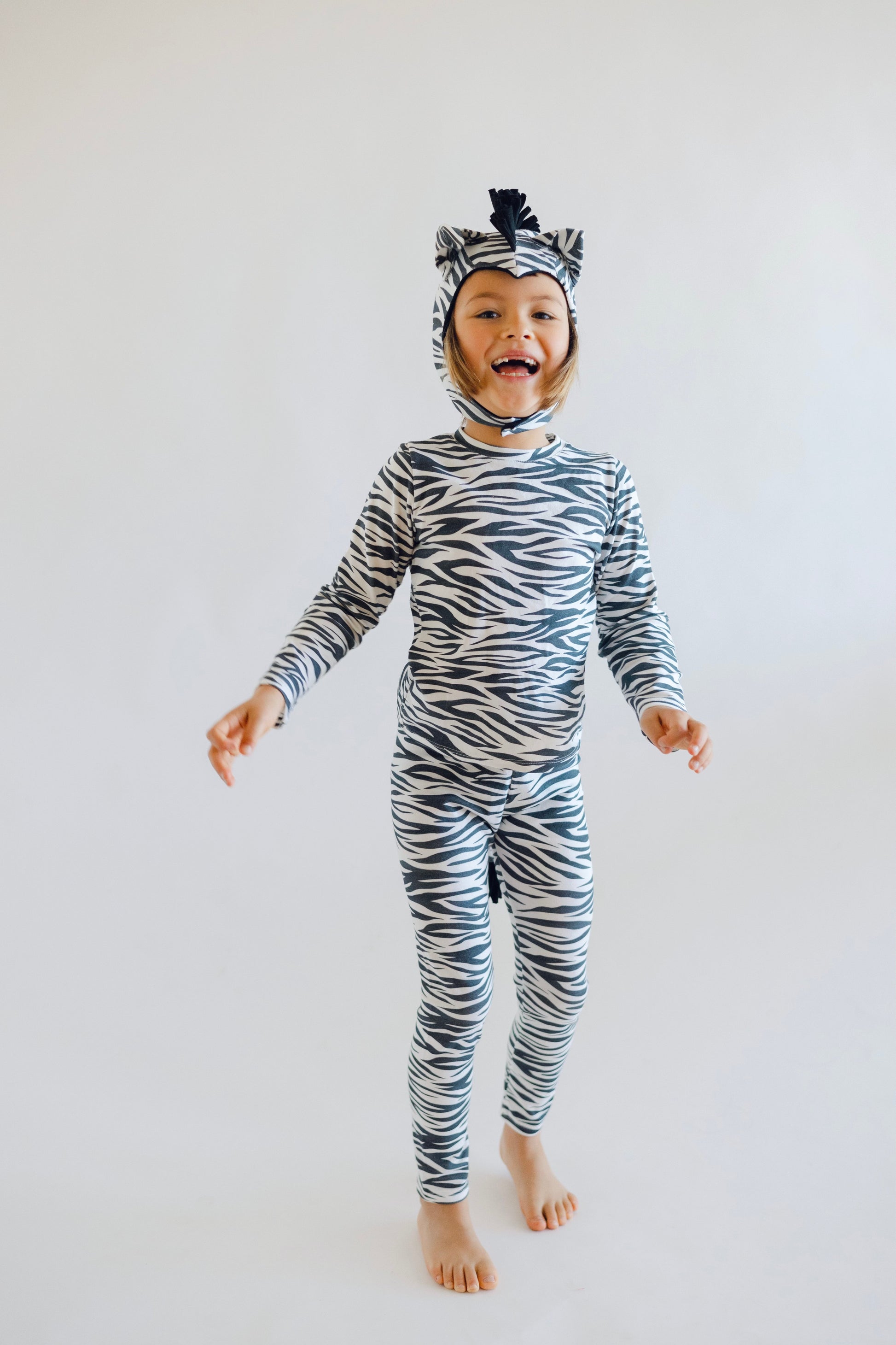 Unleash your child’s inner adventurer with this adorable zebra costume! Pretending to be your favorite animal has never been more fun. Our cozy costume features classic zebra stripes, a playful Mohawk mane, and a swishy tail that will have them feeling like a real zebra. Made from soft, breathable cotton, this costume ensures maximum comfort for hours of play. Whether they’re trick or treating or just having fun, this zebra outfit is perfect for wild adventures and everyday fun alike!